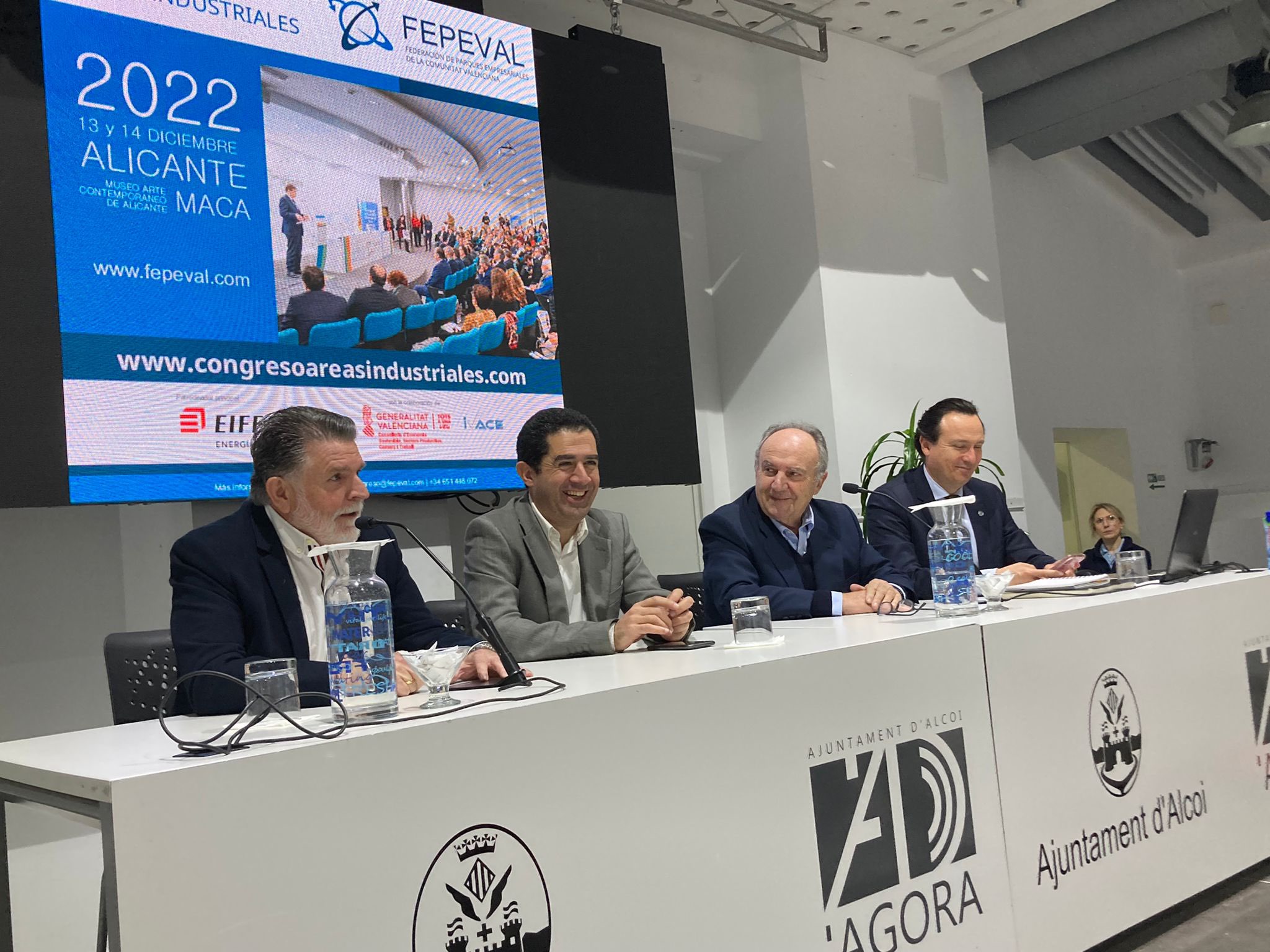 Enero 2023 – La EGM Cotes Baixes de #alcoy, anfitriona en la asamblea de Federación De Polígonos Empresariales De La Comunidad Valenciana celebrada este 1 de diciembre en Àgora con la presencia del alcalde de la ciudad, Antoni Francés, Santiago Salvador, presidente de FEPEVAL, el conseller de GVA Economia Sostenible Rafa Climent Gonzalez y la directora general del GVA IVACE Julia Company La Generalitat anuncia que para el próximo ejercicio, las ayudas para modernizar las áreas industriales pueden llegar al millón de euros. Ramón Juan Sanchis, presidente de la EGM Cotes Baixes ha agradecido a los asistentes, procedentes de áreas de toda la Comunidad Valenciana, su presencia en esta importante reunión.
